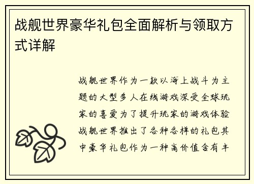 战舰世界豪华礼包全面解析与领取方式详解